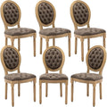 French Country Dining Chairs Set of 6, Vintage Wooden Dining Chairs with PU Leather Upholstered Tufted Seat,Solid Wood Legs&Frame, Farmhouse Kitchen&Living Room Chairs(Brown,6 Pcs)