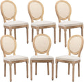 French Country Dining Chairs Set of 6, Vintage Wooden Dining Chairs with Fabric Upholstered Seat&Rattan Oval Backrest,Solid Wood Legs&Frame, Farmhouse Kitchen&Living Room Chairs(Beige,6 Pcs)