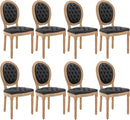 French Country Dining Chairs Set of 8, Vintage Wooden Dining Chairs with PU Leather Upholstered Tufted Seat,Solid Wood Legs&Frame, Farmhouse Kitchen&Living Room Chairs(Black,8 Pcs)