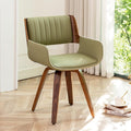 LUNLING Swivel Accent Faux Leather Dining Chairs, Mid Century Modern Chairs with Wooden Legs/Armrest/Upholstered Seat/Adjustable Foots for Kitchen Dining Room Desk Chairs,Green,1PCS