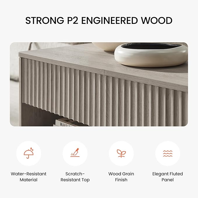 - 【Stylish Fluted Design】Featuring a fluted coffee table design, this piece effortlessly blends into various decor styles. Whether you need a coffee table for living room, office, or apartment, its Natural Oak and Gray color options provide a timeless and elegant touch.