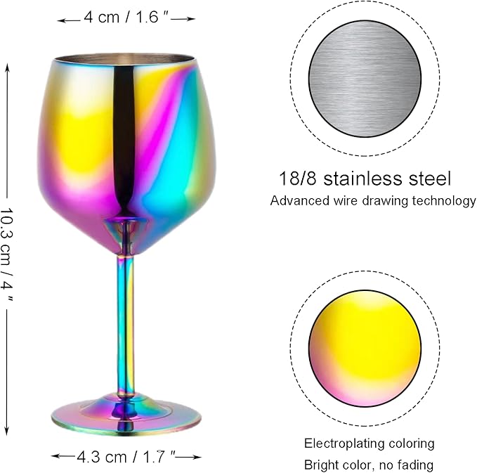 - Elegant design: These stainless steel shot glasses have undergone manual high polishing treatment, ensuring that each glass has a high-quality electroplated color and excellent metallic texture; The wide and flat base increases stability, and the long handle highlights the elegance of the metal wine glass, allowing you to easily shake the glass and release the aroma of wine. Its unique charm and practicality will definitely make you like it
