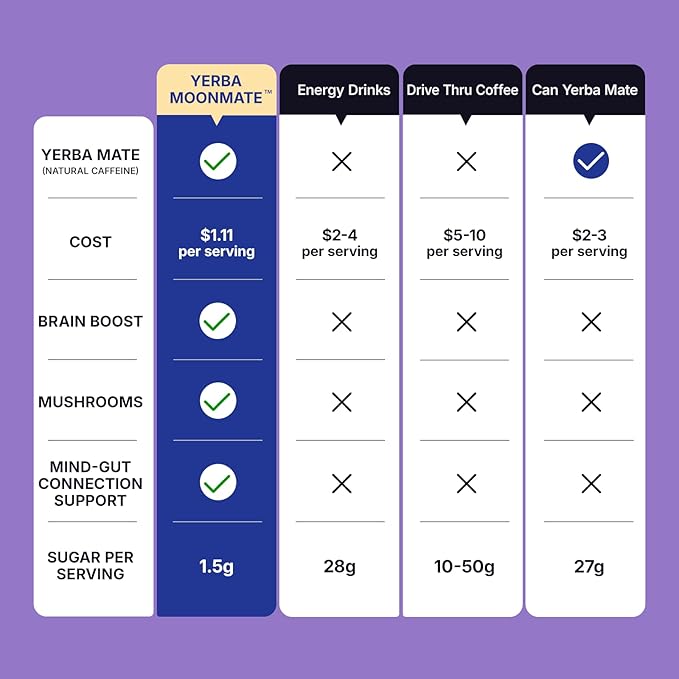 - 【MENTAL CLARITY WITHOUT JITTERS】Say goodbye to the crashes and jitters of regular coffee. Powered by natural caffeine from yerba mate. Lion’s mane mushroom and L-theanine work in harmony to sharpen your mind, reducing brain fog and boosting concentration. Enjoy a calm, clear-headed focus that lasts