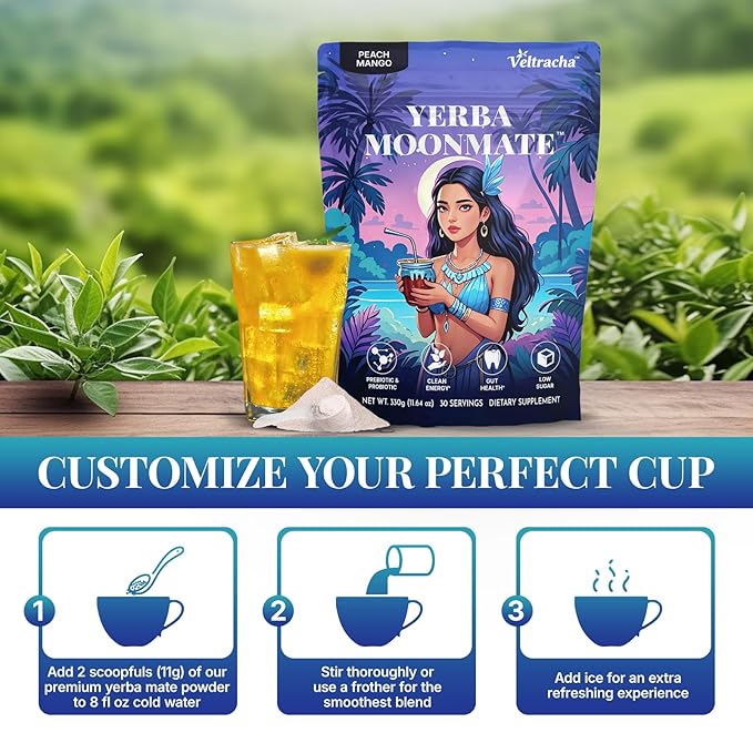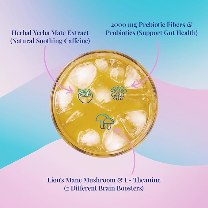 - 【4-IN-1 SUPERDRINK POWERHOUSE】We've blended pure yerba mate extract, probiotics, prebiotic fibers, and functional lion's mane mushroom into a delicious peach mango energy drink powder. As a premium yerba mate supplement, it offers clean energy and a all-round effect
