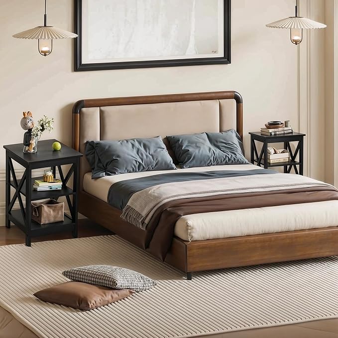 - 【3 Tier Shelf & End Table Set of 2】The table size is 23.6"D x 16"W x 16"H. Perfect for beside the sofa or in your living room . It can accommodate Alarm clock, succulent pots, decor stuff, books, and so on. The farmhouse color matches with any other furniture and gives a good look to the room