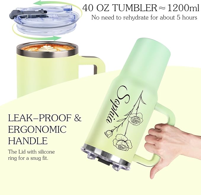 - 【Personalized 40oz Tumbler】This travel coffee tumbler is cleverly designed with flowers for each of the 12 birthday months, a design that not only adds to the visual appeal of the product, but also gives each user a special personal connection. The attractive gradient color cup design also adds a touch of style to the product. Click “Customize Now” now to start your exclusive creative journey.