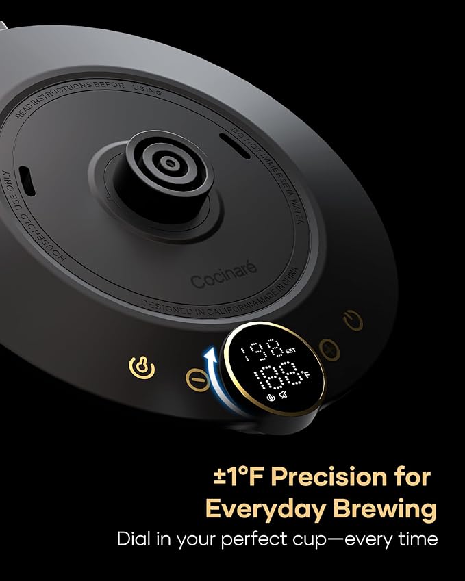- Precision Heating & Pour Control: The intelligent base maintains your set temperature within ±1℉ for optimal extraction. The S-shaped spout delivers a steady, controlled pour - ensuring consistency in every cup.