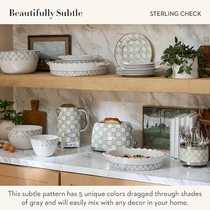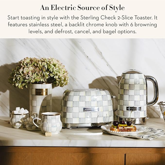 - ELEGANT KITCHEN DECOR: The Sterling Check stainless-steel 2-slice toaster is a fun take on a must-have electronic appliance. This cute toaster features our subtle gray-and-white checkered pattern with color-dragged accents that mimic brushstrokes.