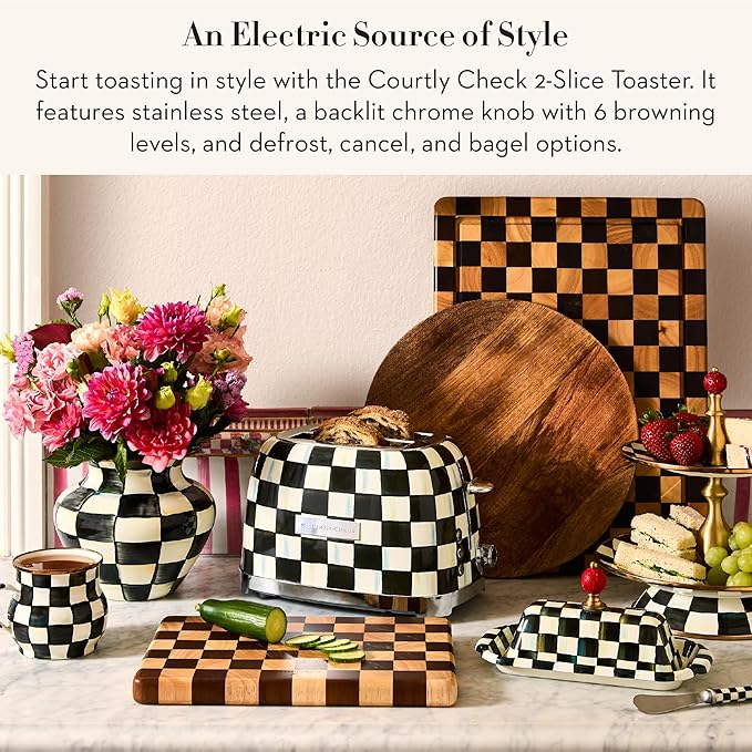 - ELEGANT KITCHEN DECOR: The Courtly Check stainless-steel 2-slice toaster is a fun take on a must-have electronic appliance. This cute toaster features our iconic black-and-white checkered pattern with color-dragged accents that mimic brushstrokes.