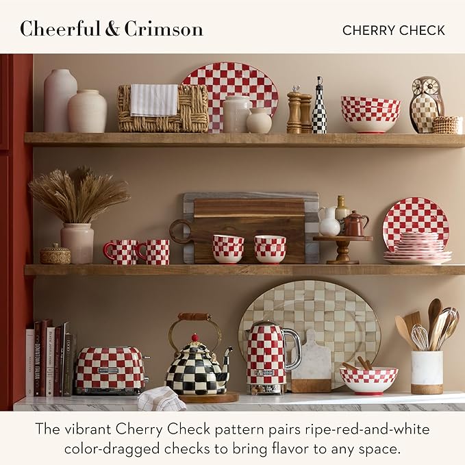 MACKENZIE-CHILDS 2-Slice Toaster, Decorative Toaster for Kitchen, Red-and-White Cherry Check
