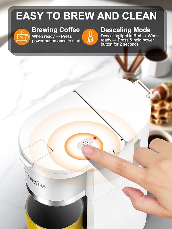 - 【Descaling Maintenance & Self-Cleaning】When your single cup coffee maker needs descaling, an indicator turns red. Just add descaling solution, hold the brew button for 2 seconds, and let it automatically clean itself. This prevents clogs and ensures optimal performance, extending the lifespan of your one cup coffee maker