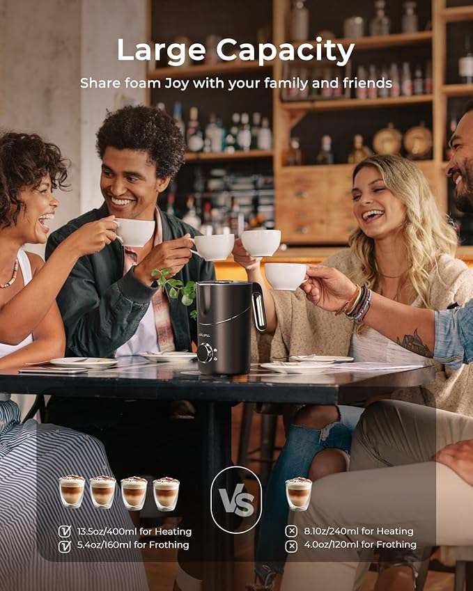 - 【Precise Temperature Control for Perfect Results】This automatic milk frother and steamer offers 3 temperature settings—normal, 60°C (140°F), and 80°C (176°F)—to customize your coffee milk frother experience. Advanced magnetic suspension technology spins at 3500 RPM, creating silky-smooth foam for lattes or frothy milk for hot chocolate. Whether you’re a milk foamer frother enthusiast or a milk warmer and frother novice, enjoy high-quality precision in every sip.
