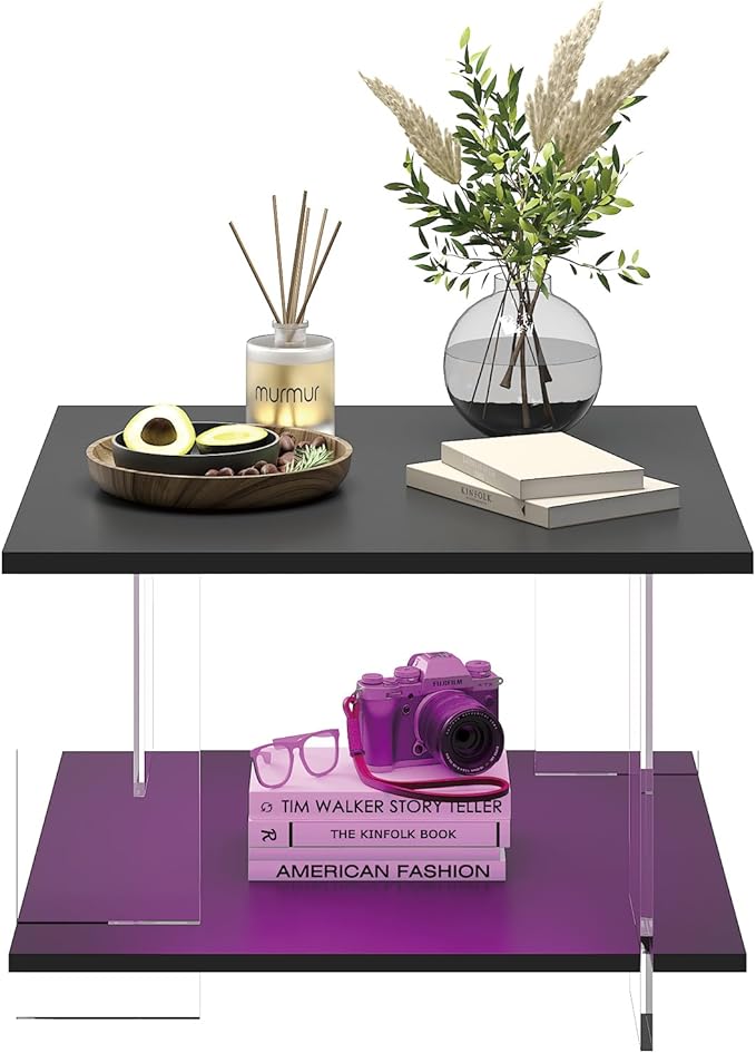 - 【2-Tier Ample Storage】The coffee table suitable for small spaces, features a roomy tabletop and open lower shelves for storage, with side acrylic panels to prevent items from falling. Away from the chaos to keep the room tidy. The decent size: 23.6"(L) x 23.6"(D) x 15.7"(H) .