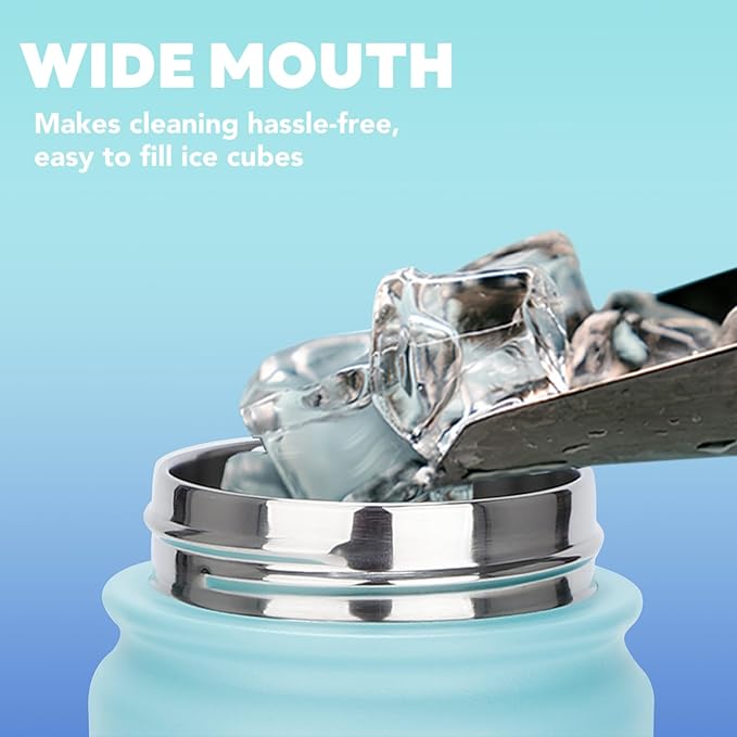 - DOUBLE-INSULATION & WIDE MOUTH DESIGN: Our insulated water bottle boasts double-wall vacuum insulation and 18/8 food-grade stainless steel. It keeps drinks cold for 24 hours or hot for 12 hours without altering taste, ensuring freshness. The wide mouth design allows easy filling with ice cubes and hassle-free cleaning. Plus, its 24oz size fits most standard cup holders.