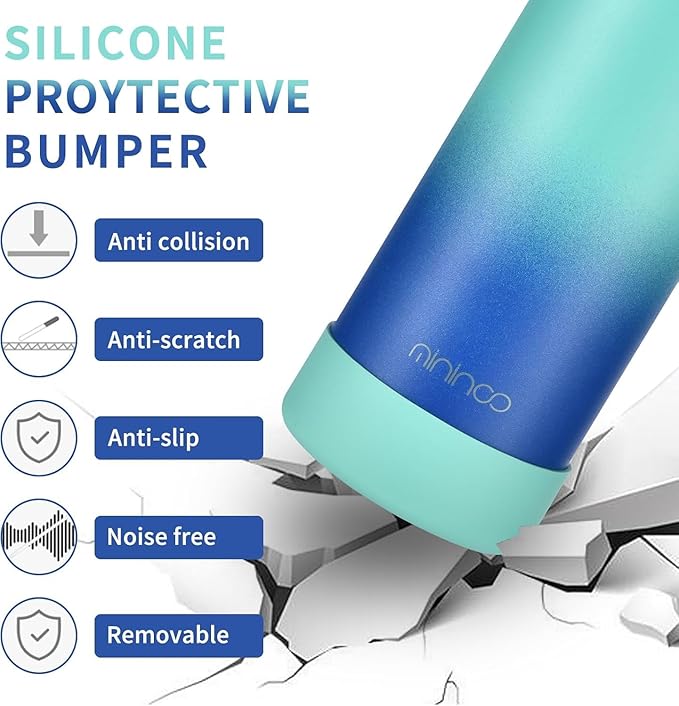 - BUILT TO LAST: Our water bottle features a high-quality BPA-free silicone bottom, perfect for avid sports enthusiasts. It protects the stainless steel bottle from dents, damage, and obnoxious clunking noises when setting it down, ensuring durability and reliability during road trips, bike trails, or gym sessions.