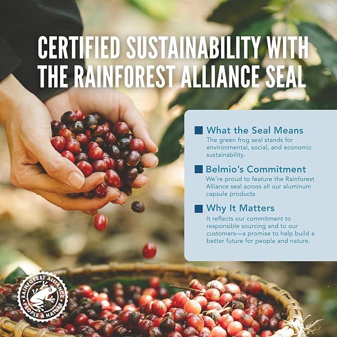 - Aroma Guard in Recyclable Aluminum Capsules – Belmio’s ‘aroma guard’ technology locks in aroma and flavor, protecting each pod from oxidation, light, and humidity for an exceptionally fresh cup.