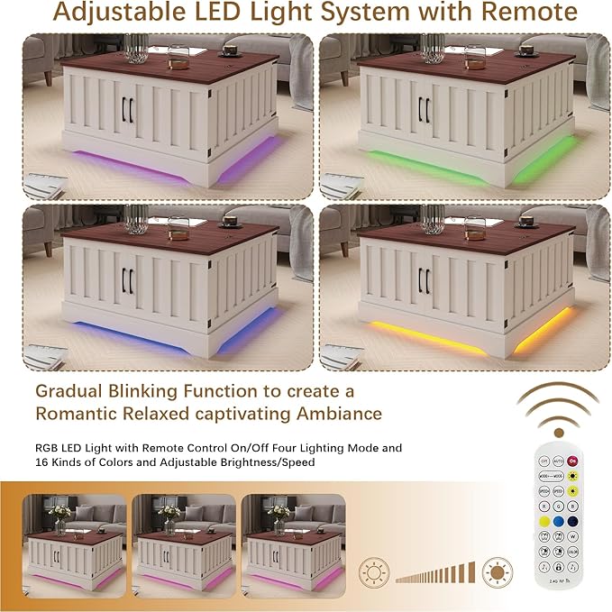 - 【Vibrant LED Lights】Add a touch of color and ambiance to your living space with our LED coffee table. Featuring 16 colors, brightness settings, light patterns, and remote control, customize the lighting to suit your mood and style. Create a relaxing or exciting atmosphere with the flick of a switch, perfect for any occasion.