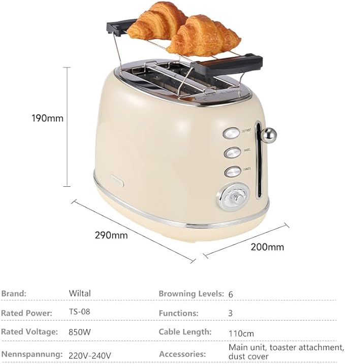 - π₯―γπΉππππ π»ππππππ ππππ πΎππ π πΊππππγWiltal 1.58" wide slots 2 slice toaster with a size of 11 x 7.16 x 7.4inch, our cream retro series toaster features a vintage Beige. Powered by 685-815W, it includes two wide slots, perfect for Bagels, Thick-sliced Bread, Sandwiches and more. Compact yet versatile, it complements your kitchen countertop.