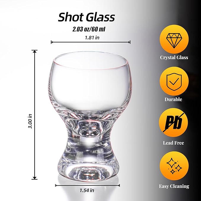 - 【Clear Shot Glass Set】Super quality shot glasses set of 2. These classy but timeless shot glasses looks great and feels sturdy in your hands. Entertain, Dine and Party with elegant glasses. Adding some glamour to your family or friend party.