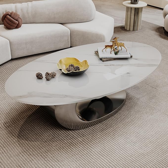 - Contemporary Coffee Table: This coffee table with white marble top, and an unique rich Silver stainless steel base(polished to 8K mirror effect finish), which gives it a modern appearance. Perfect to put home decor like books,remotes,magazines,photos, plant etc.The coffee table size is large than the similiar style on the market