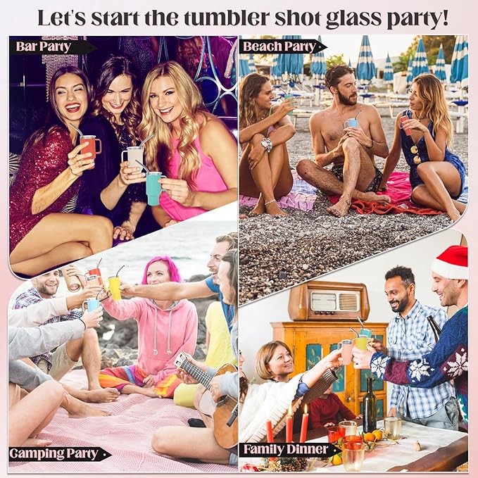 - Adorably Portable Charm: Unveil the enchanting world of our mini tumbler shot glass set, where cuteness meets convenience; These petite delights, with their 2 oz capacity, effortlessly slip into your pocket or purse; Ideal for life on the move, they transform ordinary moments into delightful sips of joy, making them the perfect companions for every adventure