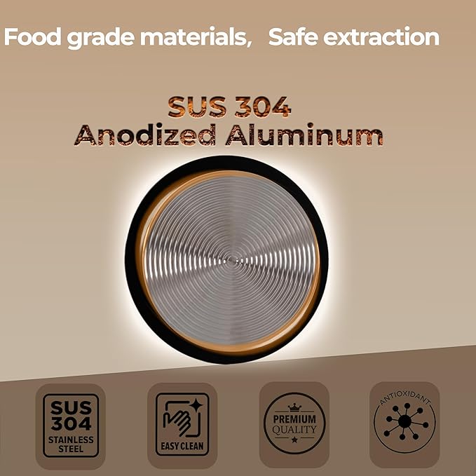 - 𝗣𝗿𝗲𝗺𝗶𝘂𝗺 𝗕𝘂𝗶𝗹𝗱 & 𝗘𝗿𝗴𝗼𝗻𝗼𝗺𝗶𝗰 𝗖𝗼𝗺𝗳𝗼𝗿𝘁: Crafted with food-grade 304 stainless steel base and anodized aluminum handle for durability and hygiene. The ergonomic contour with non-slip grip minimizes wrist strain during prolonged use. Its retractable structure ensures a maximum depth of 20mm for filling and compression, more uniform compression for optimal extraction