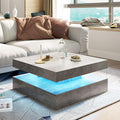 Grey LED Coffee Table for Living Room, Living Room Table 2-Tier Square Middle Center Table, Modern Coffee Tables with Storage, Contemporary Wood Tea Tables for Dining Reception
