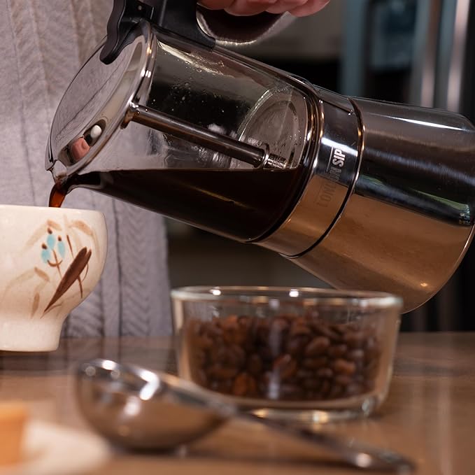 - HEAT-RESISTANT AND DURABLE GLASS: Crafted from high-quality borosilicate glass, this moka pot espresso maker resists thermal shock and withstands high temperatures, delivering safe, efficient brewing on all stovetops, including induction.