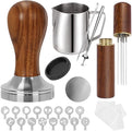 - 24Pcs espresso accessories tools barista set, including1* 53.3mm coffee tamper 1* latte art pen 16* decorating stencils 1* coffee stirring spoon 1* 350ml milk frothing pitcher 1* coffee tamper mat 1 * barista towel 1*WDT tool 1*53.3mm Espresso Puck Screen ,this kit isIdeal Gift for Coffee Lovers(Fits for54mm Portafilters)