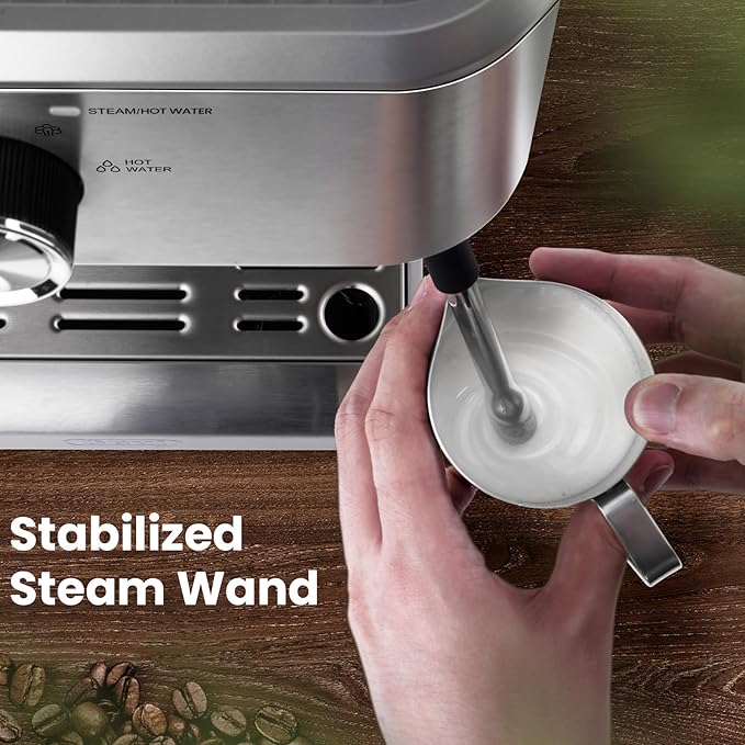 - 𝐏𝐨𝐰𝐞𝐫𝐟𝐮𝐥 𝐌𝐢𝐥𝐤 𝐅𝐫𝐨𝐭𝐡 - The espresso machine with milk frother is equipped with a reliable steam wand that efficiently transforms milk into silky smooth microfoam, perfect for crafting rich, thick milk foam every time.