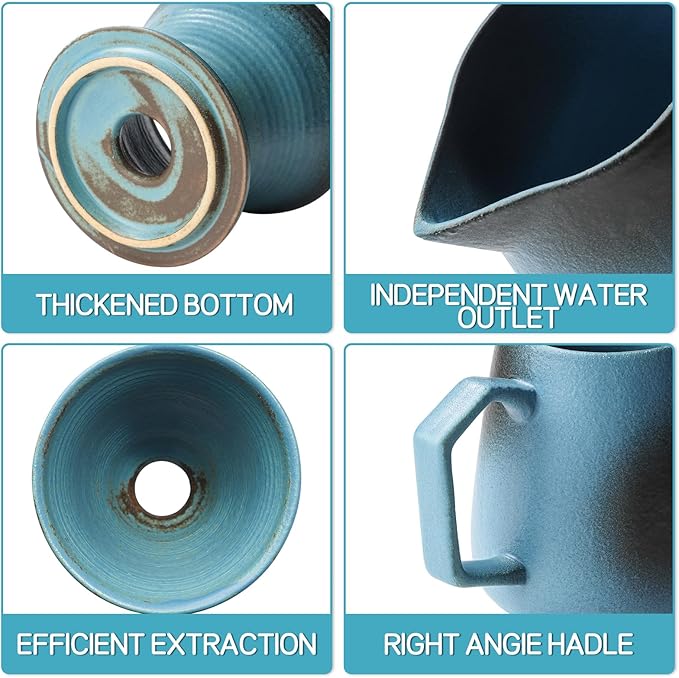 - Ceramic Material: Crafted from premium ceramic, this pour-over set offers excellent heat preservation and durability for daily use. The ceramic resists thermal shock while ensuring long-lasting performance.