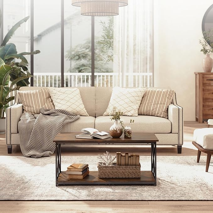 - 【Visible Sturdiness】 Built with a strong X-shaped metal coffee table frame, reinforced rectangular structure, and a weight capacity of up to 170 lbs, ensuring long-lasting stability for everyday use.
