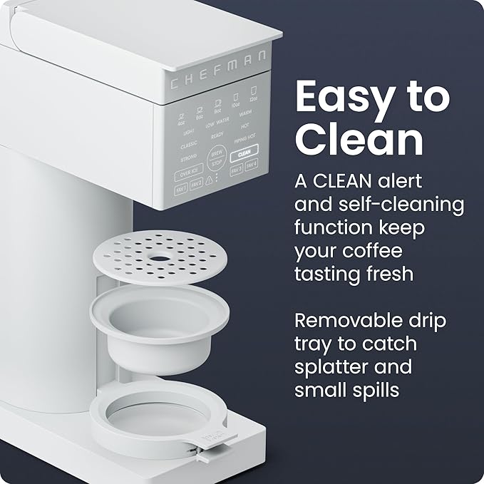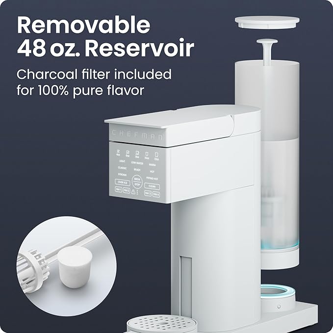 Chefman Caffeinator Single Serve Coffee Maker, Brew Kcups & Grounds, Drip Coffee Machine with Brew Strength Settings, Iced Coffee Function, 48 oz. Removable Water Reservoir