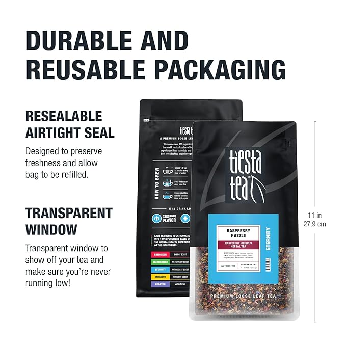 - RESEALABLE, REUSABLE BULK TEA POUCH: No matter where life takes you, Raspberry Razzle Herbal Tea is there to refresh you. Whether you’re at home, at work, or on-the-go, enjoy this delightful, fruity blend in a bulk pouch, sleek tin, or portable pouch—perfect for satisfying your cravings whenever and wherever you need a burst of flavor.