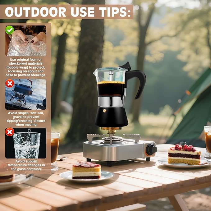 - UNIVERSAL HEAT COMPATIBILITY: Our stovetop coffee maker thrives on gas, induction, ceramic, or open-flame heat sources. It works wherever wanderlust strikes