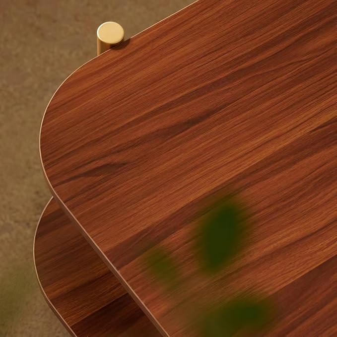 - 【Material Quality】Built with premium walnut MDF shelves and a strong gold metal frame, this wood table combines durability with a luxurious appearance. The smooth walnut finish enhances its Mid-Century modern style, adding warmth and sophistication to your home.