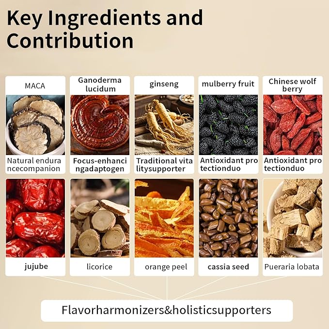 - NATURAL INGREDIENTS: Features Reishi Mushroom, Wolfberry, Red Dates, and Mulberry for comprehensive wellness support and antioxidant benefits