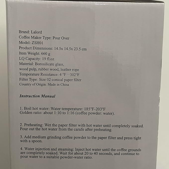 Pour Over Coffee Maker, 19 oz Borosilicate Glass Coffee Carafe with 100 PCS Paper Filter, Wooden Collar & Cowhide rope, Glass Coffee dripper (Clear, 550 ml(only Paper Filter))