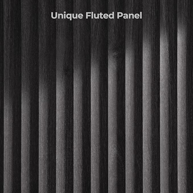 SICOTAS Round Coffee Table for Living Room, Mid Century Modern Fluted Center Coffee Table with Storage, 32" Circle Accent Tea Dining Table for Apartment, Dark Grey Alder