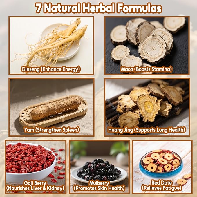 - Straight from Nature: Our ginseng six treasure tea is crafted from premium ginseng, huangjing, mulberry, maca, goji berry, red dates, and yam, delivering the freshest and most flavorful brew