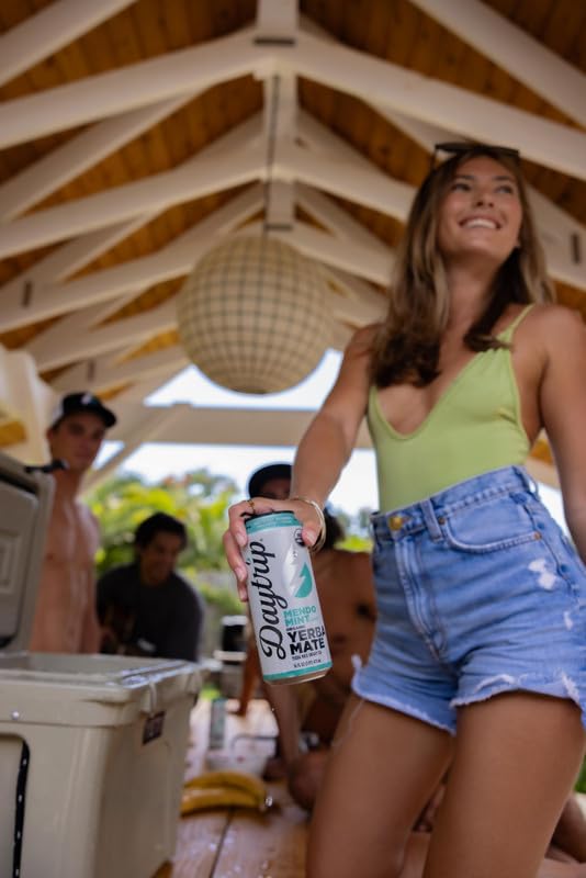 Daytrip Organic Yerba Mate Energy Drink- Clean, Plant Based Caffeine (200mg) with Adaptogenic Mushrooms and Green Tea for Focus and Brain Fog - Low Calorie, Low Sugar (12 Pack Case)