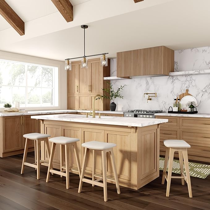 - Quality Wooden Kitchen Stool: Crafted with a solid rubberwood base, engineered wood seat, and a metal footrest, this vegan leather counter stool is designed for stability and long-lasting use, while looking great in any room.