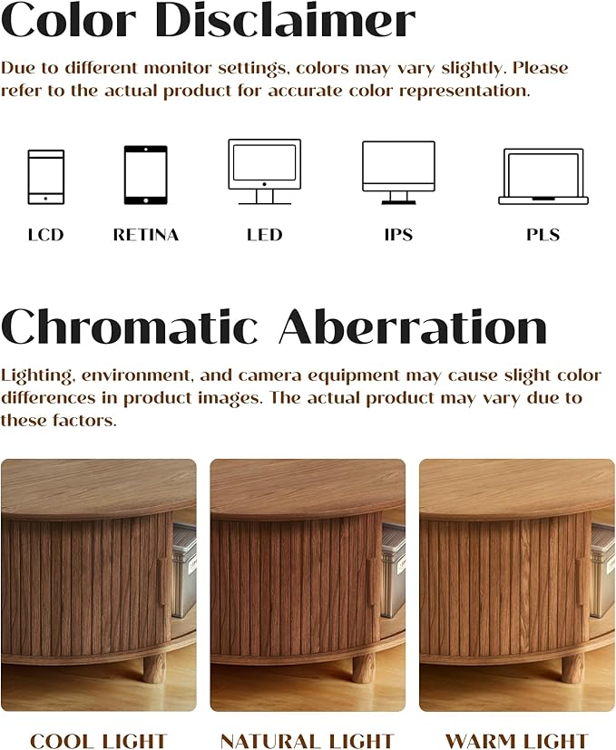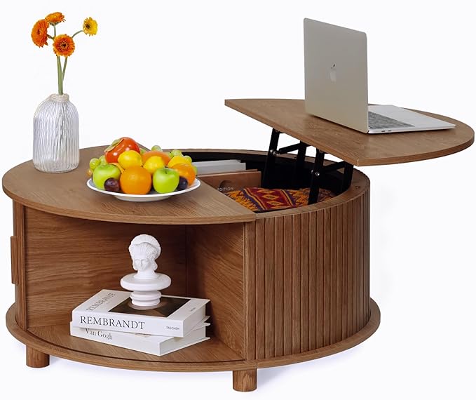 - AMPLE STORAGE CAPACITY: 31.5 in round coffee table features a split design with half hidden storage and half open shelf; Perfect for organizing books, snacks, and remote controls; Keeps your living space neat and efficient