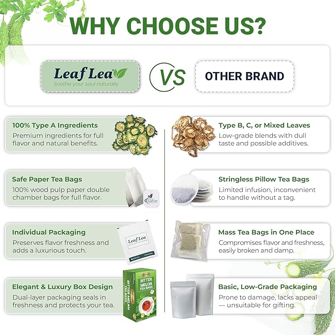 - Eco-Friendly, Biodegradable Bitter Melon Tea Bags: Our tea bags are made from biodegradable, eco-friendly materials with no staples, strings, or chemicals. Enjoy a natural tea experience that's good for you and the planet.