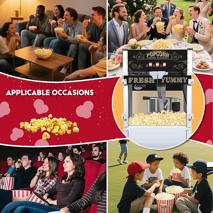 - 【High-Quality Popcorn Machine】Built to last, this popcorn machine with a cart is made from highly durable materials, including heavy-duty powder-coated steel and stainless steel food zones.