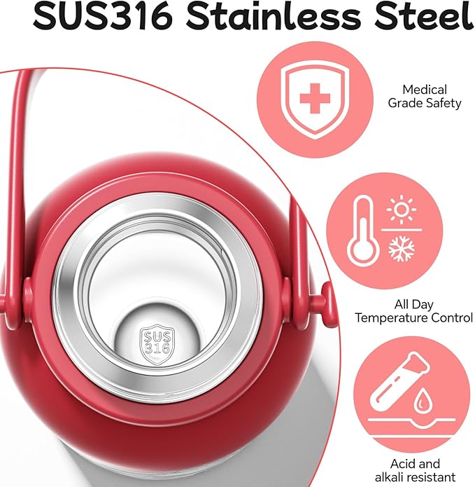 - ③316 Stainless Steel Liner: Durable, Corrosion-Resistant + Temperature-Locking Medical-grade 316 stainless steel liner (superior to standard 304): Durability: Resists rust in humid/muddy outdoor environments and corrosion from electrolyte or acidic sports drinks in the gym, ensuring long-term stability. Temperature retention: Keeps ice cold for 24+ hours outdoors (perfect for summer hikes) and hot liquids warm for 12+ hours in the gym (ideal for soothing warm tea post-workout), delivering "your ideal temperature anytime" in both settings.