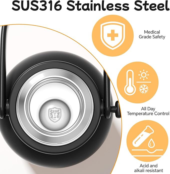 - ③316 Stainless Steel Liner: Durable, Corrosion-Resistant + Temperature-Locking Medical-grade 316 stainless steel liner (superior to standard 304): Durability: Resists rust in humid/muddy outdoor environments and corrosion from electrolyte or acidic sports drinks in the gym, ensuring long-term stability. Temperature retention: Keeps ice cold for 24+ hours outdoors (perfect for summer hikes) and hot liquids warm for 12+ hours in the gym (ideal for soothing warm tea post-workout), delivering "your ideal temperature anytime" in both settings.