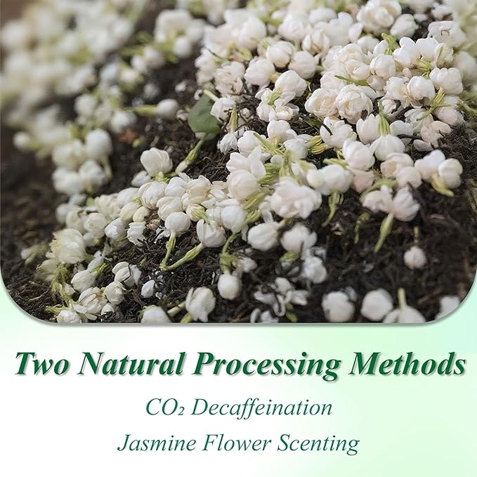 - 【Crafted with Traditional Jasmine Scenting】Decaf green tea is scented through multiple infusions with fresh jasmine flowers, allowing the leaves to absorb their natural aroma. The flowers are then removed, leaving a clean, floral taste without any petals