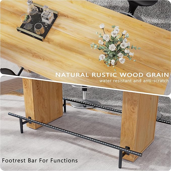 - Enhanced comfort:The counter height table with metal footrest is higher than ordinary tables,It can provide more comfortable experience when you are dining or drinking,The spacious table-top for several persons together which make cozy,relaxing rest time