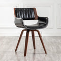 LUNLING Swivel Accent Faux Leather Dining Chairs, Mid Century Modern Chairs with Wooden Legs/Armrest/Upholstered Seat/Adjustable Foots for Kitchen Dining Room Desk Chairs,Black,1PCS